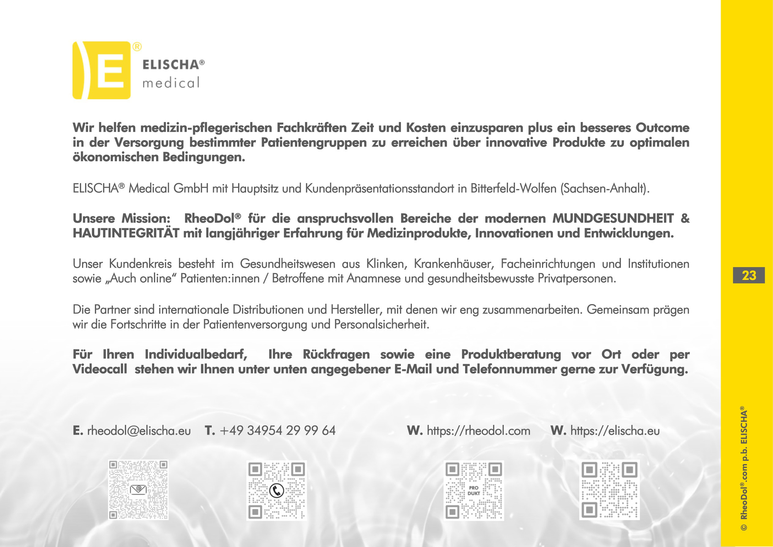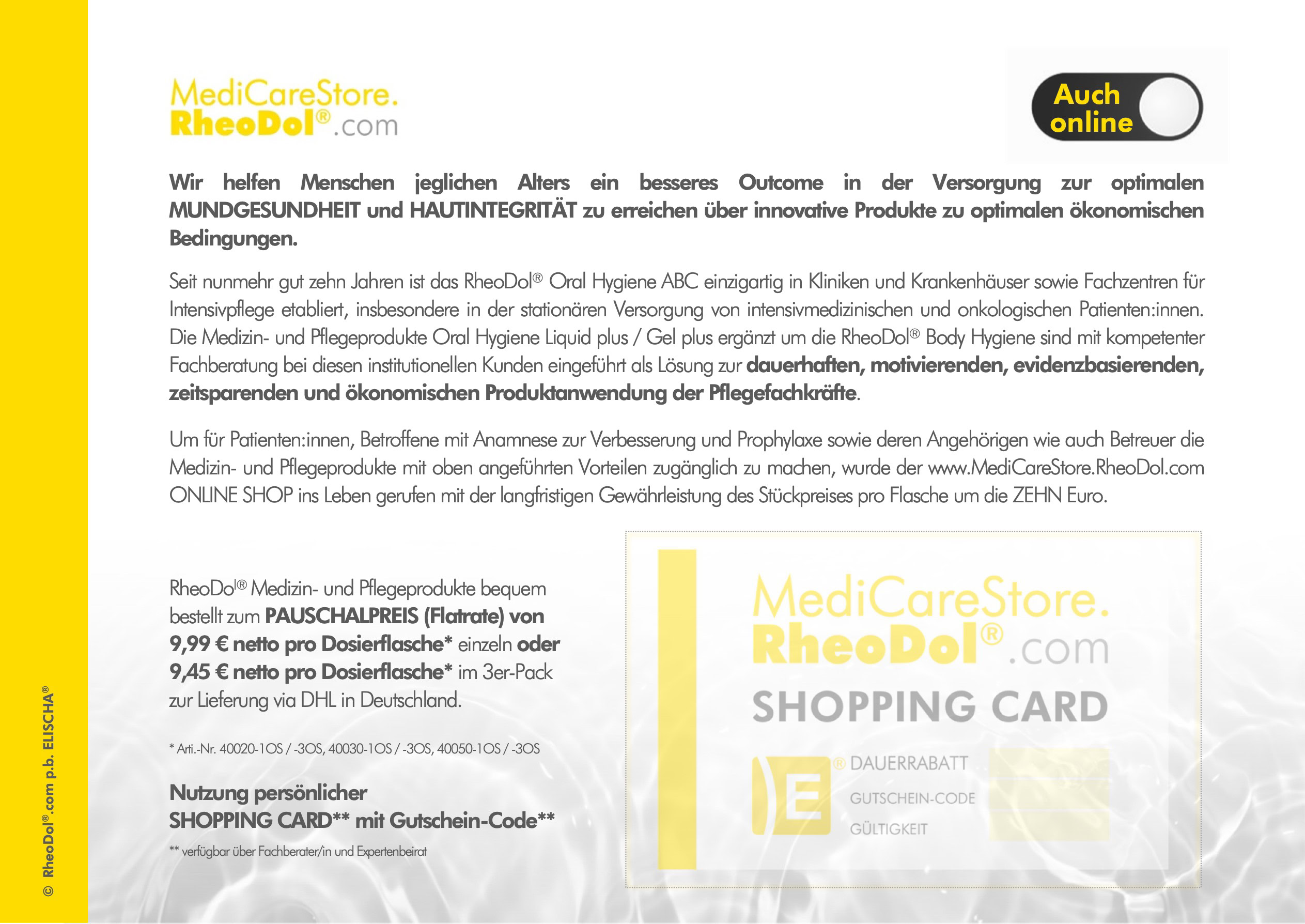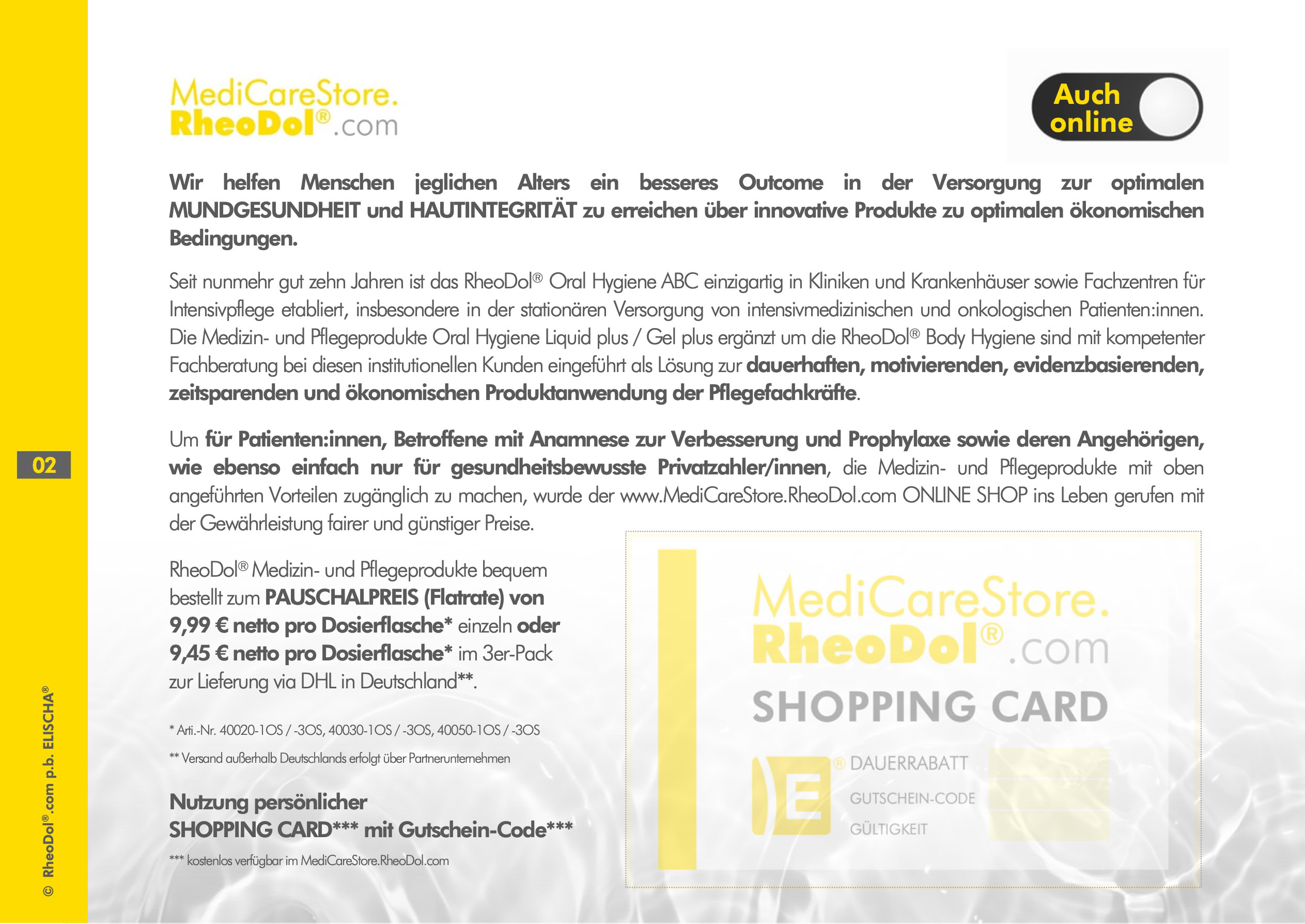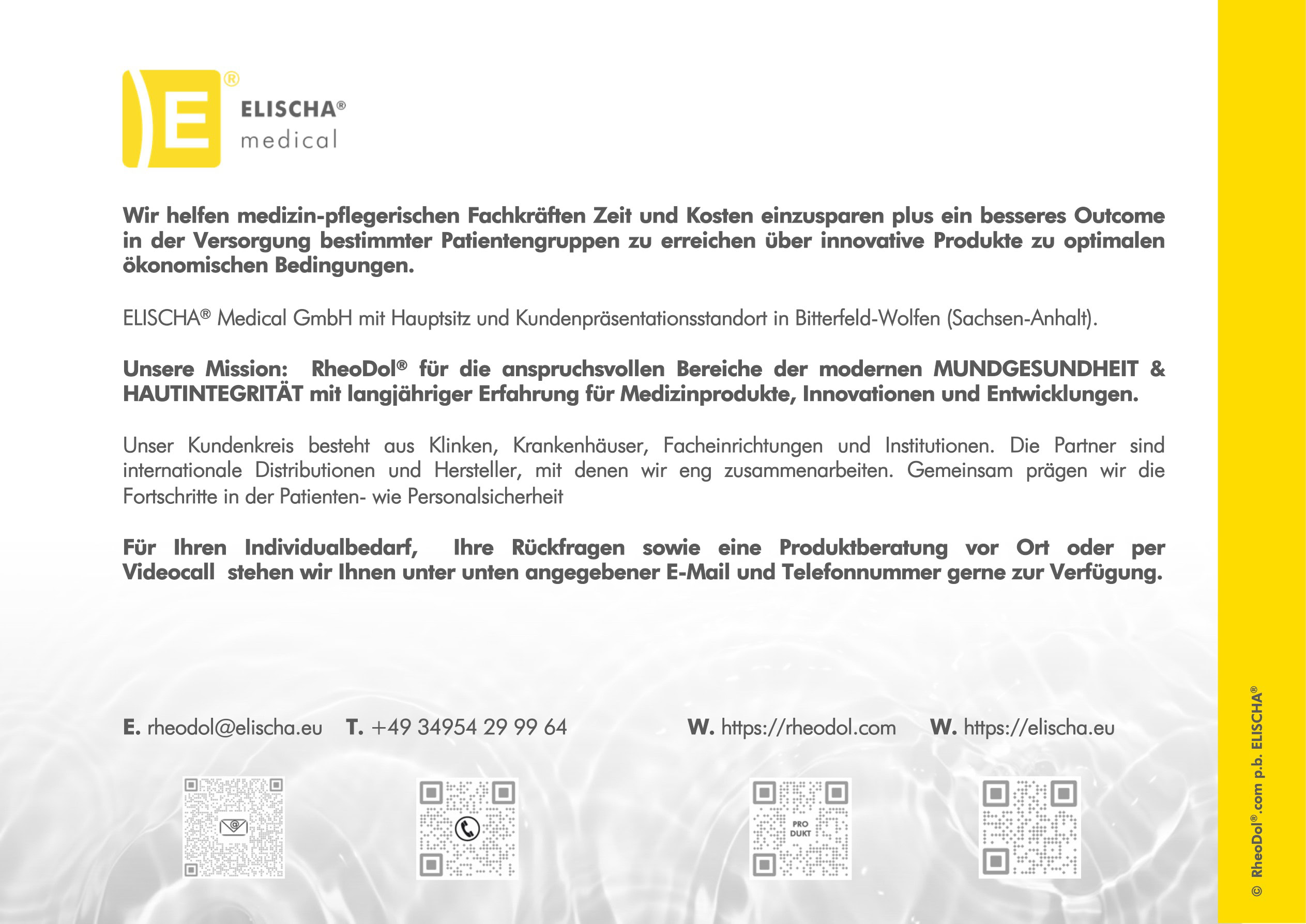 RheoDol® Oral & Body Hygiene hilft ein besseres Outcome in der Versorgung bestimmter Patientengruppen zu erreichen plus Kosten und Zeit einzusparen über innovative Produkte zu optimalen ökonomischen Bedingungen.